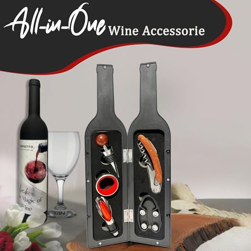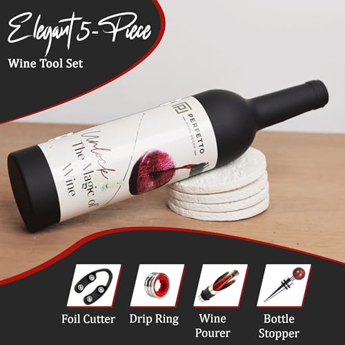 - 5-PIECE WINE TOOL SET: This set includes a corkscrew opener, foil cutter, wine stopper, drip ring, and pourer, ensuring you have everything needed to enjoy your favourite wines with ease.