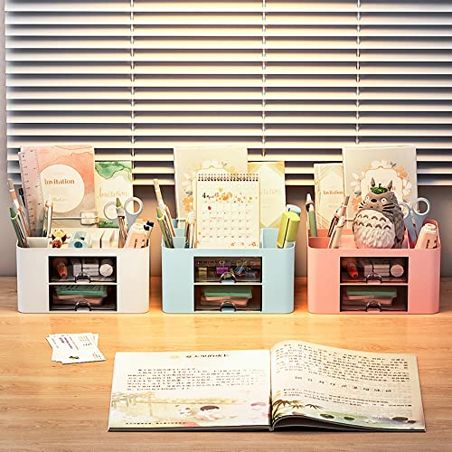 - ✍【 Multifunctional storage case】Desk organiser is available in pink, white and blue. This organiser can store pens, office utensils, brushes, remote controls and cutlery, ideal for children, offices and families. It is a gift for students, teachers and office workers.