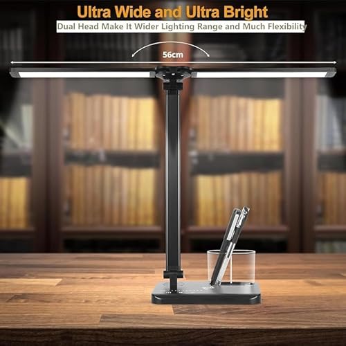 - Dual Head & Versatile Lamp – Desk lamp features a cool dual-head design, stretching 180° both ways for awesome lighting flexibility; The dual-head splits into two beams of light, concentrating for enhanced brightness or dispersing to cover a larger illuminated area; The 56cm-length whole lamp head can illuminate ample light, single head 25cm; Lamp is 36cm tall