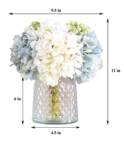 - Artificial Flowers in Vase: Flower arrangement with vase include Hydrangeas floral and berries. The perfect combination of bouquets and vases, lush floral will enhance any room in your home or office.