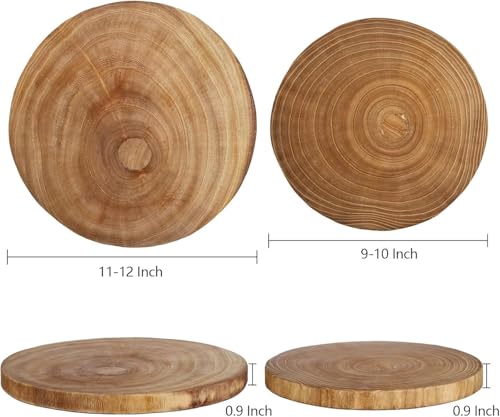 - Wide Application: Rustic wood slices can be used for serving board, table centerpiece, display stand, cake stand, cheese server, backdrop decoration, photo prop, cutting board, charcuterie board, carving, Christmas ornament, charger plate, coaster, ect.