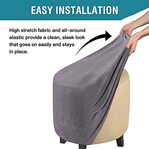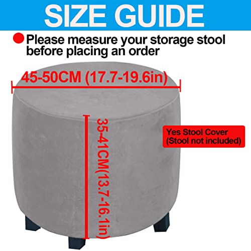 - [GREAT FIT]: Small Velvet Round Footstool Cover is made of luxurious high-stretch velvet polyester and spandex . SIZE FITS diameter 45 – 50CM (17.7-19.6in) in diameter, height 35-41CM (13.7-16.1in). Please measure your footrest size before ordering