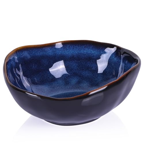 - Elegant Ocean-Inspired Design: This blue ceramic bowl features a stunning ocean-inspired blue glaze, evoking the tranquility of the sea. The irregular brown edges add a unique touch of artistry, making it a perfect decorative bowl for home decor or a centerpiece bowl in both modern and traditional interiors. The striking color combination ensures it’s a standout piece