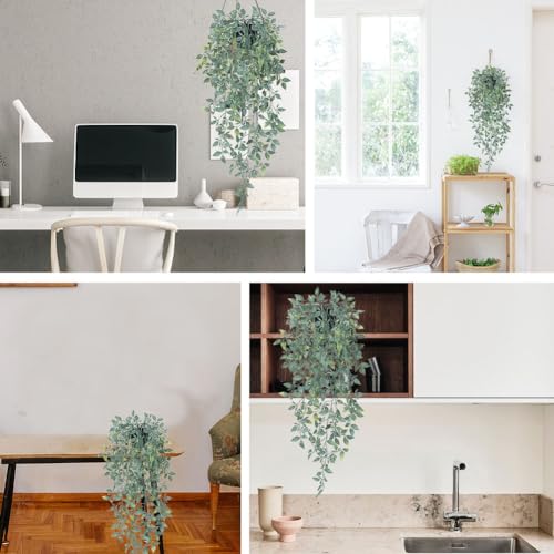 - Easy to Maintain: Faux plants for indoors decoration looking like real preserved plants, will not wither, fade or be easily damaged. Enjoy the great atmosphere the green trailing artificial plants create without having to worry about watering, pruning, or other maintenance. It just needs to be wiped gently with a damp cloth
