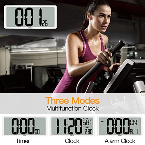 - 【Multi-Functional Digital Clock Timer】 —– 5 in 1 Large LCD display Calendar Clock includes Digital Wall Clock, Calendar, Temperature, Alarm, Count up&down Timer. You can operate according the instructions, easy to operate. User-friendly design, 12 or 24 Hour display formats with indoor temperature display in ℃ or ℉, meet your various needs. In addition, built-in button cell battery can memory the time ensure that the time is always accurate when replacing the batteries.