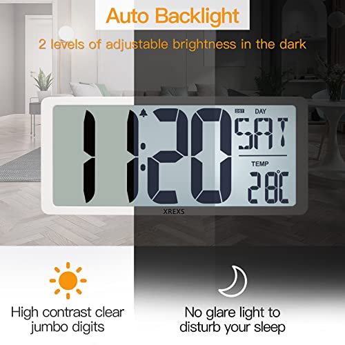 - 【Large Screen Display Wall Clock with Upgrade Backlight】 —– 5.9 inch digits height, smart backlight functions, adjustable two modes brightness. As the brightness of daylight and light changes, the backlight brightness of the XREXS digital wall clock will be automatically adjusted, also you have two function settings: constant brightness and automatic adjustment.