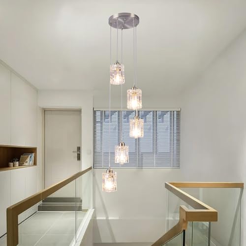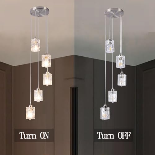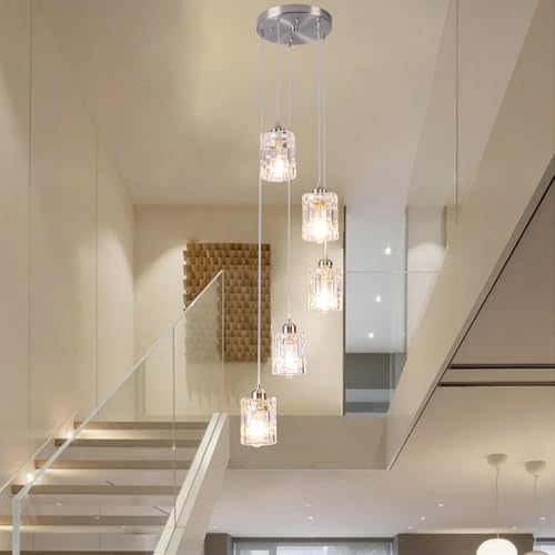 - 5-Lights Chrome Chandeliers: Suitable for high ceilings, foyer, staircase, entrances,entryway and more. Very suitable for housewarming gifts.