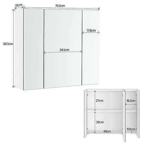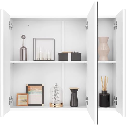- Frameless Mirror Doors: Three bright mirror doors make it easy for your daily makeup and cleaning, and ensures the inner shelf is dust-free. The smooth door edge allow you to open and close the door effortlessly