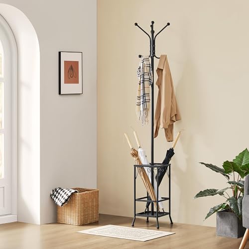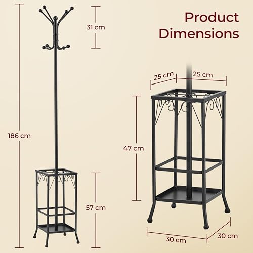 - Save space: This holder combines coat rack, hat rack and umbrella holders in one, 8 hooks in total. The holder is slim and free-standing, and great for any place without occupying too much space