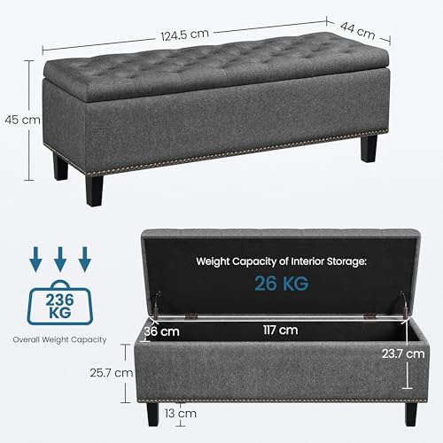 - Sturdy & Stable: Constructed with selected materials and supported by solid rubber wood timber legs, this ottoman storage bench can hold up to 236 kg