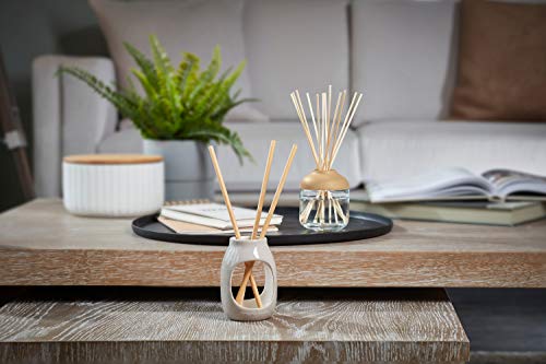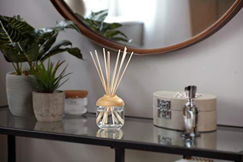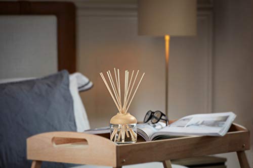 - Contains 1 wooden-featured glass bottle with fragranced oil (120ml) and 12 reeds