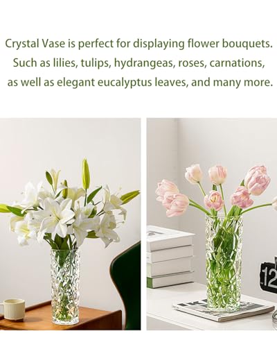 - 【Proper Size】9.84" Hx3.94"W .this crystal vase strikes the perfect balance between size and practicality. It comfortably accommodates fresh blooms while remaining nimble and space-conscious, making it an ideal addition to desks or windowsills.