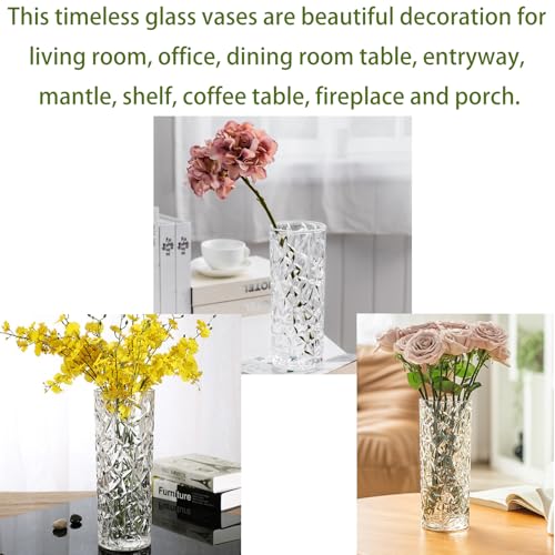 - 【Vases for Flowers】Glass flower vases is perfect for displaying flower bouquets. Such as roses, carnations, tulips, sunflower, lilies, Beautiful decoration for living room, dining room table, entryway, mantle, shelf, coffee table.