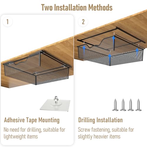 - Multi-scenario application: Under desk shelf storage provides extra storage space for your desk, organizes power strips and cable management under desk, frees up more office space. The metal drawer storage is versatile for use under desks, kitchen cabinets, or in closets.