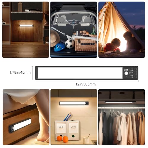 - 【3 Color Temperatures, 5 Levels of Brightness】The rechargeable motion sensor closet lights has three different temperature level((3000 [warm], 4500 [natural], or 6000 [cool]) to give you the light you like and to adjust the brightness of the light with button control on the light which is five levels of brightness. 20%, 40%, 60% 80%, and 100% and and the lighted indicator tells which one you've selected