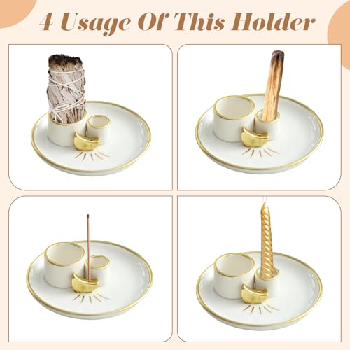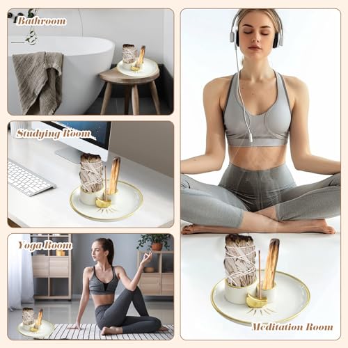 - 【Multi-Purpose Design】 This multi-functional incense burner can be used as incense holder, palo santo burner, sage burner and candle holder. The incense hole on the moon is 0.78 inches. The palo santo holder is 0.9 inches, and the sage holder is 1.57 inches. they can be compatible with most of incense sticks, holy woods, and sage smudging bundles.