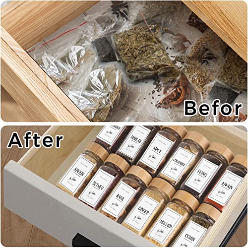 - Premium Bamboo Spice Jars: These spice jars feature shatterproof glass and are made from lead-free and BPA-free materials. The lids are made of natural bamboo for healthier ingredients. In addition, the airtight bamboo lids can keep spices fresh and dry