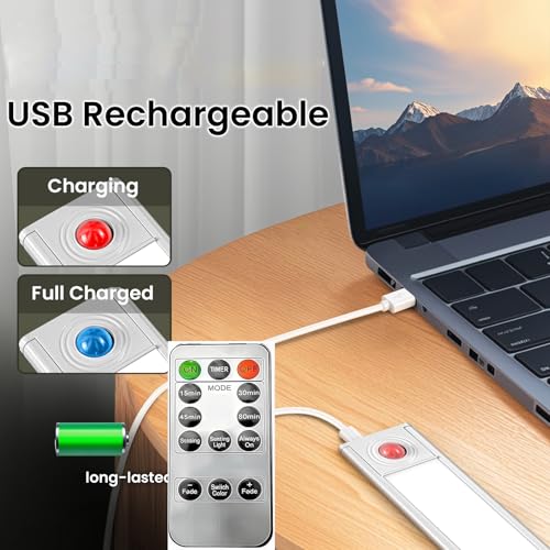 - 【USB Battery Operated Rechargeable Light】: The wireless led lights are equipped with a built-in rechargeable polymer lithium battery, which is compatible with all DC 5V-1A charging output adapters via Type-C charging cable. One charge in auto mode offers up to 2 months of continuous use, while in always-on mode it can be used continuously for 5 to 6 hours, depending on the brightness of the light