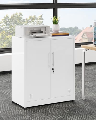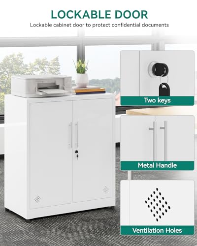 - LOCKABLE DESIGN: This double door storage cabinet is equipped with a lock and 2 keys to meet the needs of customers for private storage. Important files and items can be placed in cabinets and locked to prevent loss.