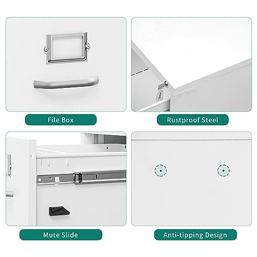 - INTERLOCKING SYSTEM & ANTI-TIPPING DESIGN – When one drawer is opened, the interlocking system prevents the other drawer from opening; Anti-tipping holes in the back of the filing cabinet enhance safety mechanism