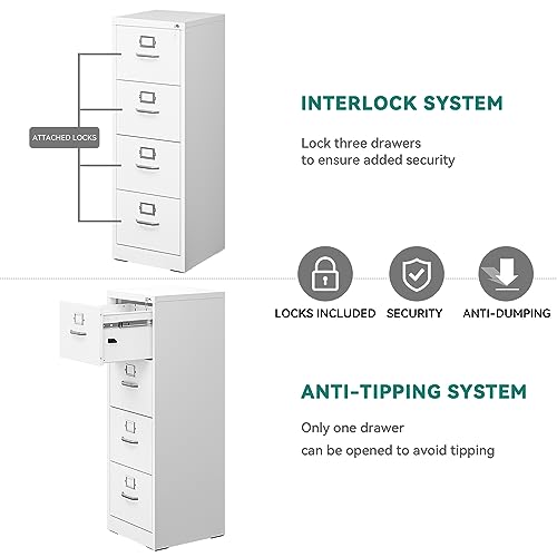 - SAFE STORAGE & VERSATILE – Office storage cabinet features 1 lock on top to secure the 4 drawers, comes equipped with two keys for airtight item security and privacy; Can be used in various settings such as offices, homes, schools, archives, garages, basements, or anywhere that secure storage space is required