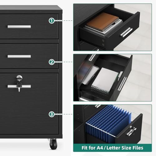 - LOCKABLE FILING DRAWER- The two folders hangers in the bottom drawer are made using stainless steel. They can be moved and adjusted to easily accommodate letter-sized and A4 folders. The bottom drawer can be locked so you can store personal documents, receipts and bills with peace of mind.
