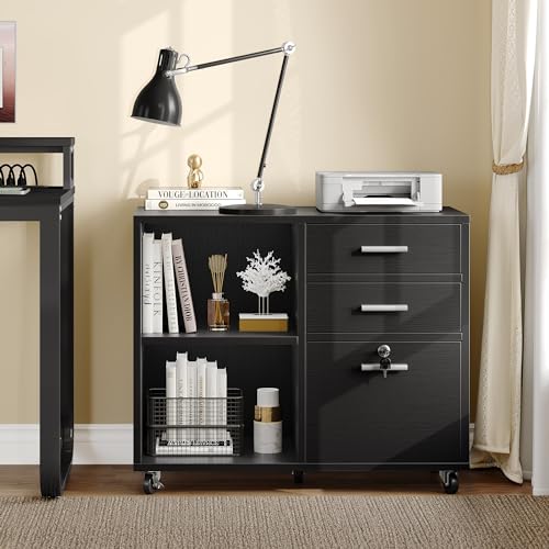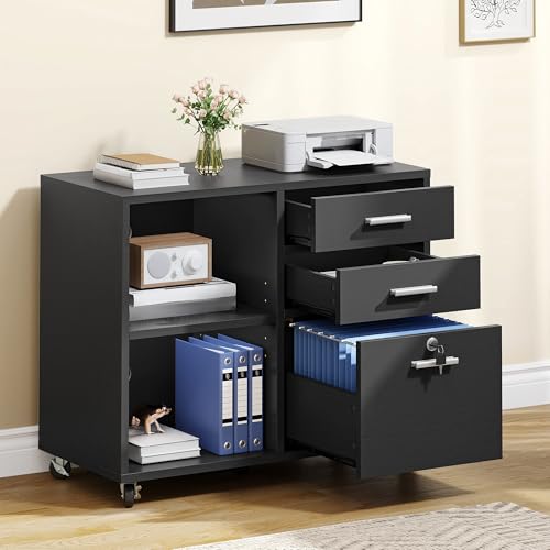 - MULTI-FUNCTIONAL & STYLISH- Complete with open storage spaces and file drawers, this filing cabinet is designed to organize office machinery, paper, files, and suppliers. It can be placed next to or under a desk. The sleek and modern aesthetic makes it a fantastic fit for any office or home