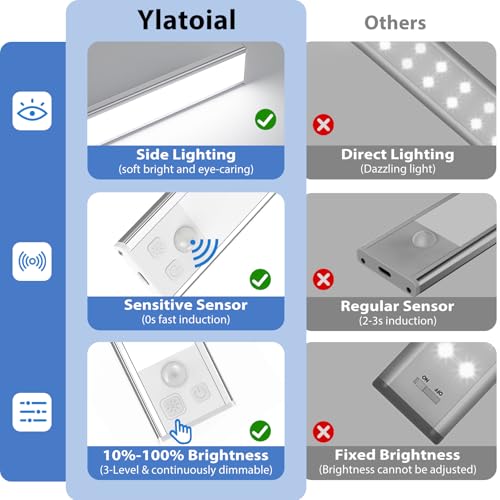 - 【Dimmable Brightness to Fit Every Mood & Task】- Whether you're slicing vegetables in the kitchen, selecting an outfit from your wardrobe, or simply creating a cozy evening ambiance, these great motion sensor lights indoor features stepless dimming from 100%–5%, or tap to switch between 5 brightness levels, let you adjust the brightness with precision to match every scenario