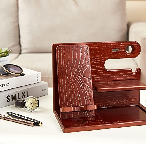 - Wood phone docking station for men for storing bedside table essentials.The dock station are specifically designed to accomodate glasses,keys,rings,wallet,coins,watch and more.Everything you need is at your fingertips!