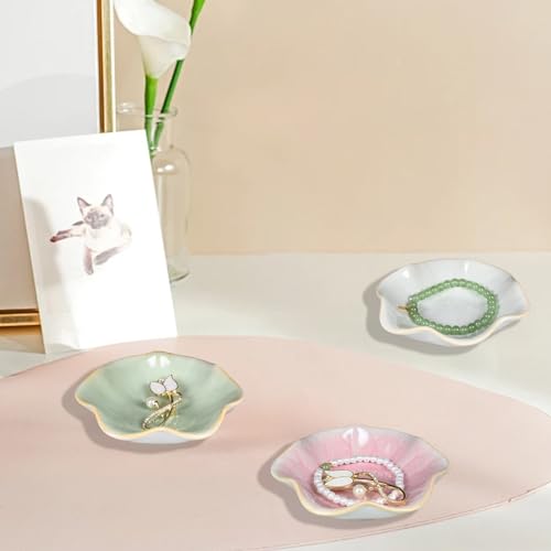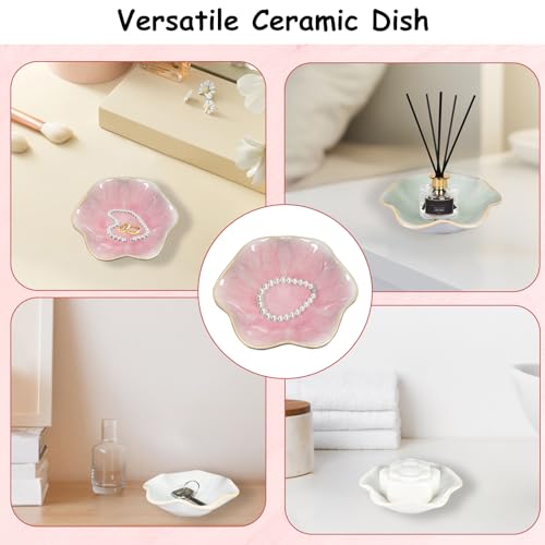 - 💍【Elegant Flower Shape Design】Our ceramic jewellery trinket dish features a beautiful flower shape design with flowing lines, available in pink, green, and gray. Whether used as a trinket tray or as room decor, it adds a touch of charm to any space.