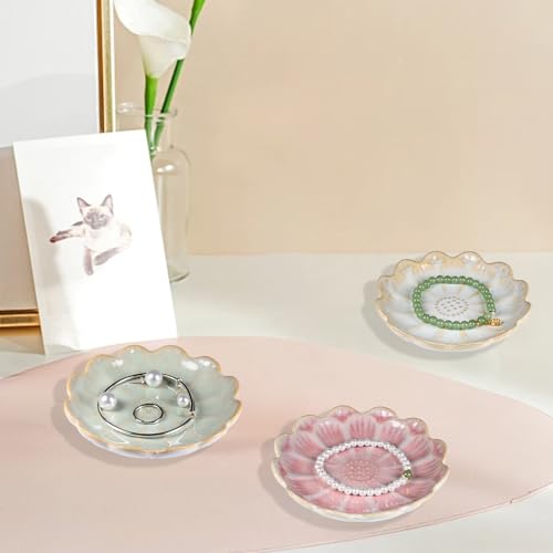 - 💍【Elegant Flower Shape Design】Our ceramic jewellery trinket dish features a beautiful flower shape design with flowing lines, available in pink, green, and white. Whether used as a jewellery holder or as room decor, it adds a touch of charm to any space.