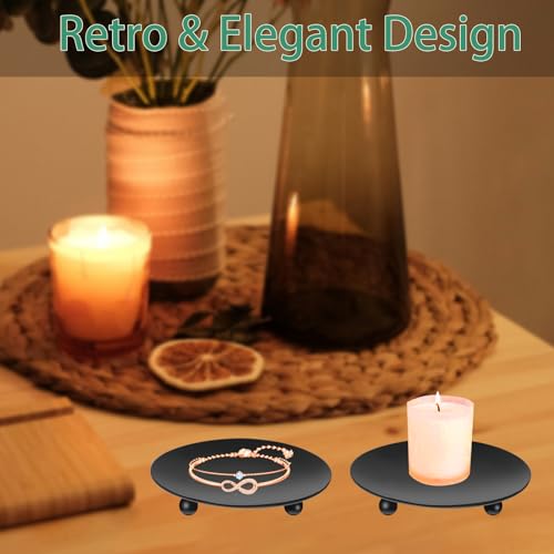 - 🕯️【Thoughtful Design】The pillar candle plates are designed with three welded round supports at the bottom, making them stable and secure on various surfaces, preventing tipping and enhancing safety.
