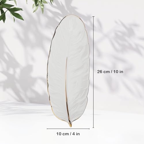 - 💍【Elegant Feather Shape Design】This ceramic jewellery dish tray features a sophisticated feather-inspired design with smooth, flowing lines and exquisite details. The edges and central stem are adorned with a luxurious gold finish that perfectly complements the available colors—white, green, pink, and cyan. Whether used as a trinket tray or room decor, it adds a captivating elegance to any space.