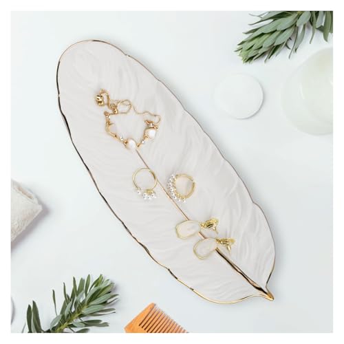 - 💍【Versatile And Stylish】Combining functionality with aesthetics, this ceramic jewellery dish enhances the elegance of any vanity or dressing table with its gold accents and feather motif. It's perfect for organizing and displaying rings, necklaces, bracelets, earrings, and other small trinkets. The feather's delicate texture beautifully highlights the brilliance of your jewellery, making it both practical and visually appealing.