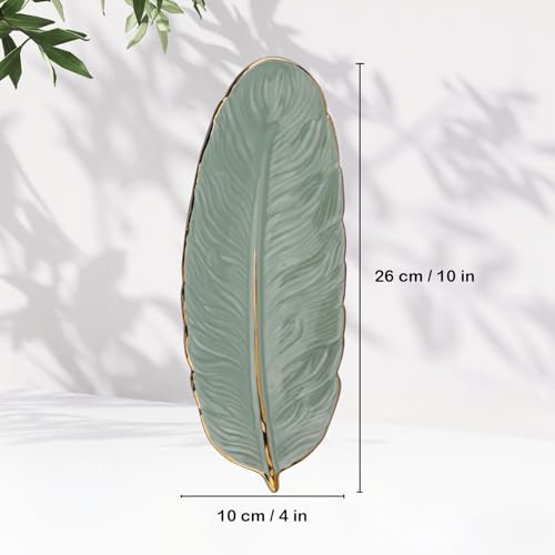 - 💍【Elegant Feather Shape Design】This ceramic jewellery dish tray features a sophisticated feather-inspired design with smooth, flowing lines and exquisite details. The edges and central stem are adorned with a luxurious gold finish that perfectly complements the available colors—white, green, pink, and cyan. Whether used as a trinket tray or room decor, it adds a captivating elegance to any space.