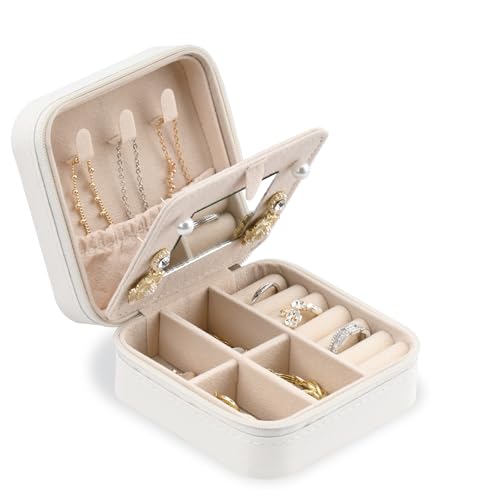- 💍【Built-In Mirror And Secure Zipper Closure】This small jewelry box includes a convenient interior mirror, allowing you to check your accessories and makeup anytime. The sturdy metal zipper ensures a secure closure, preventing jewellery from getting lost during travel.
