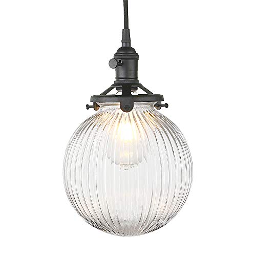 - Vintage pendant lighting: Crafted of clear glass, features ribbed detailing that beautifully reflects and refracts the light. Graceful curves enclose the bulb within, while the hand-finished brass cord and hardware enhance its glamorous feel