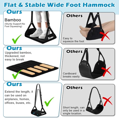 - 【Airplane Foot Rest】- The wider foot hammock with removable sturdy Support Plates by memory foam & bamboo, elevate your comfort. Its stable bamboo plates support design effectively supports foot weight, preventing foot compression.