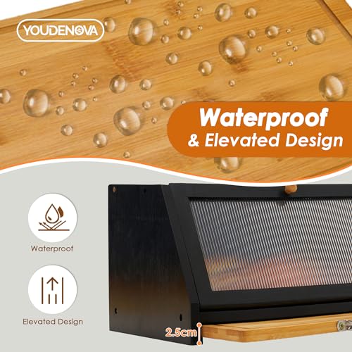 - 【Cutting Board & Knife Block】The cutting board is made of high-quality bamboo and has a thickness of approximately 1.2CM. The side of the bread box is equipped with a knife storage rack, which is safe and convenient. The bottom of the bread box is 2.5cm away from the table, and the cutting board does not come into contact with the table, making it easy to clean and effectively preventing mold formation; An economical and efficient bread box with storage and cutting board functions.