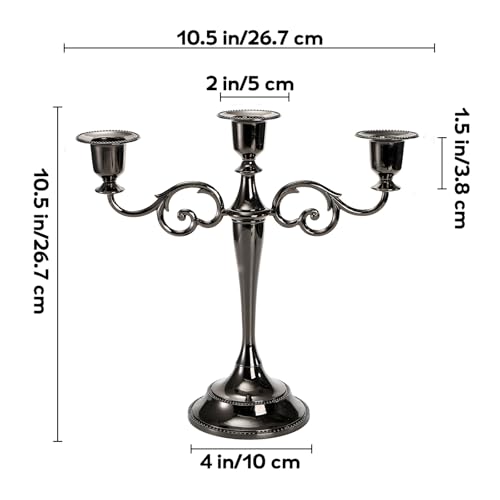 - YOUEON 3 arms candelabra measure 10.5"Wx10.5"H/26.7 x 26.7 cm, which is able to place 3 pillar candles measuring up to 0.5-1 inch/1.2 x 2.5 cm diameter each. The tall candlestick holder will allow you to provide a perfect amount of light illumination from the 3 candles.