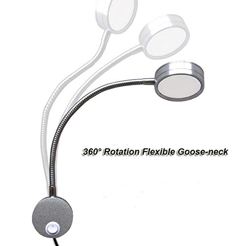- * Flexible Goose-neck : 30cm / 12inch length with 360° rotation flexible goose-neck easily positioned in any direction and give you bright light to where you need— Turn up for a nice ambient light, turn downwards for reading without bothering others