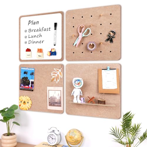 - All in one Kit: Includes 4 pcs 12" x 12" high-density notice boards, 20 wooden pegs, 10 pushpin, and an acrylic shelf—everything for your decorative setup.