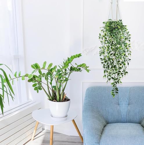 - 【Natural like Appearance】These fake hanging plants are masterfully crafted to mimic real plants. Their foliage has amazing life – like qualities, bursting out of the pots just like natural hanging plants. The shapely leaves and vivid green hues look incredibly realistic, adding an air of elegance to any indoor space. They create an environment that makes you feel as if you're in the heart of nature.