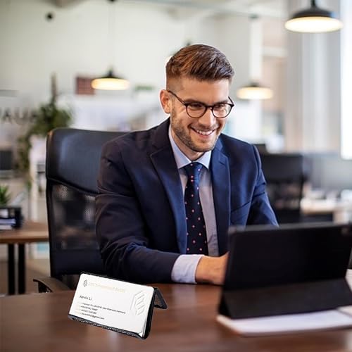 - Space saving and large capacity: The mesh business card display has a very narrow profile and takes up little space on your desk. It is suitable for normal business card sizes. It can help you save space and organize your business cards, you don't have to worry about not finding your business cards in time.