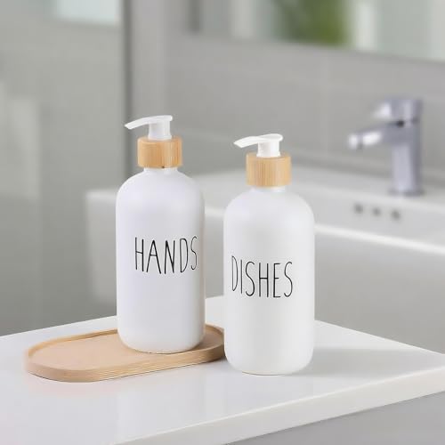 - Clear 'Hands' & 'Dishes' Labelling: Distinctive, elegant labels prevent mix-ups, ensuring guests and family always use the right soap. Ideal for kitchen sinks and bathroom countertops