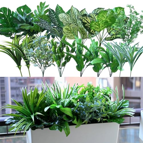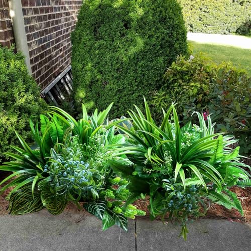 - 【Package Includes 15PCS Bulk Fake Plants Combination of Various Kinds of Plants 】: It is great value combination of 15 bunches artificial greenery plants. These UV-resistant fake plants arrangement is perfect to enrich outdoor space with a touch of nature because of its lifelike look and full of real plants' layered beauty. Ideal for front porch, window box, planter, pot, hanging basket, garden, wedding, yard and patio decoration.