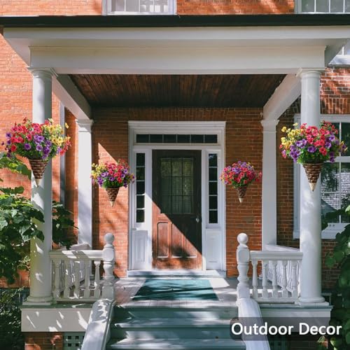 - 【Look Real Hanging Flowers】: These UV-resistant hanging artificial silk colorful flowers are designed to look and feel real, creating a beautiful and vibrant atmosphere in your porch, front door, indoor, home patio, living room, office, or any other outdoor area.