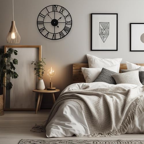 - BOLD VINTAGE SKELETON DESIGN – This decorative wall clock features an open-face metal frame with classic Roman numerals, combining traditional style with a modern edge. Its timeless design makes it a stunning centrepiece for any interior wall.