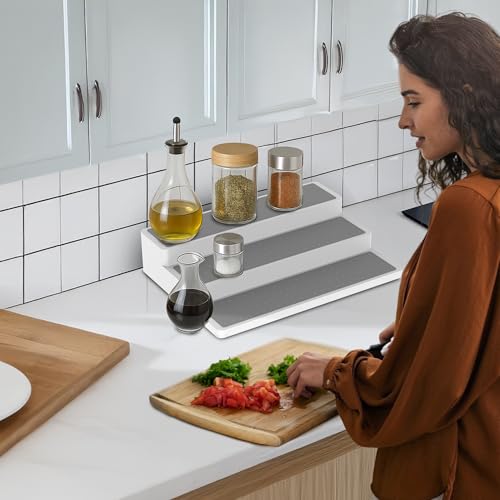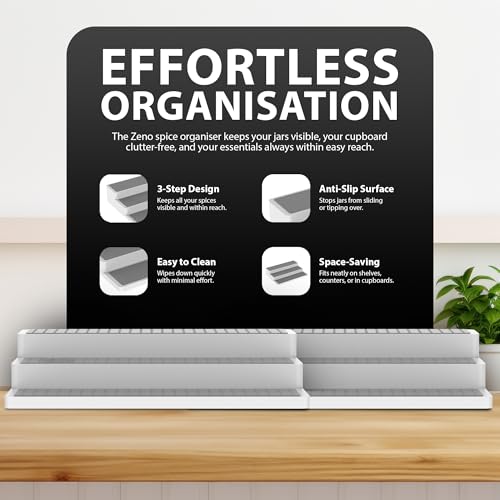 - 3-TIER SPICE RACK FOR ORGANISED KITCHENS – This multi-level spice organiser provides easy access to seasoning jars, herbs, and condiments, keeping your kitchen cupboards tidy and clutter-free.