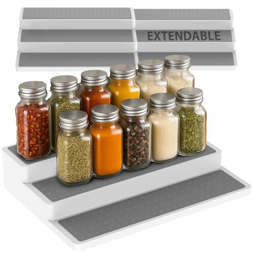 - EXPANDABLE DESIGN TO FIT YOUR SPACE – The adjustable width allows this spice shelf to expand, making it perfect for small and large cupboards, countertops, and pantry shelves.